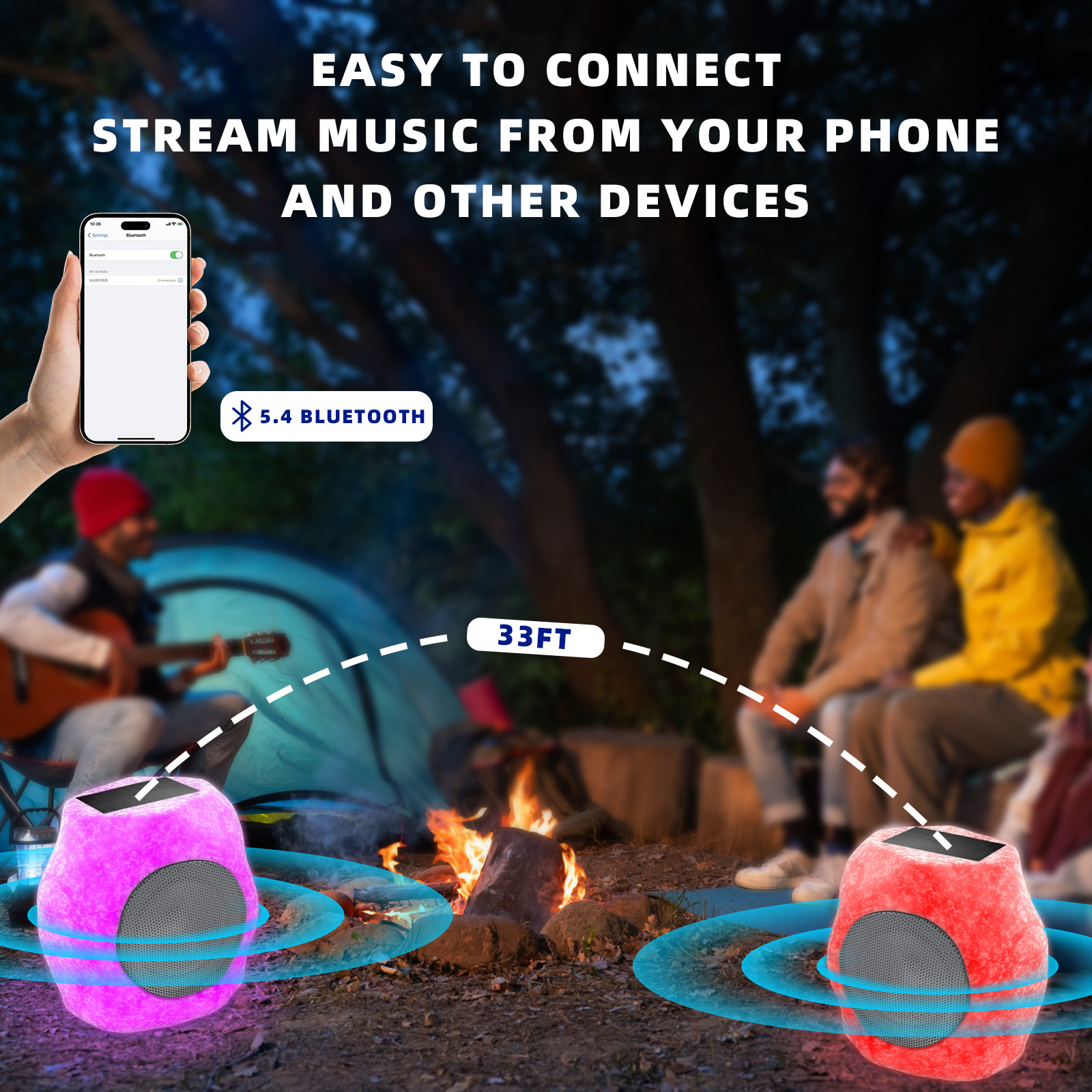 Multifunctional Wireless Outdoor Speakers: With a realistic stone look and powerful stereo surround sound, the outdoor bluetooth speaker is not only a speaker, but also a decorative piece that fits perfectly in any environment, decor or terrain. So wireless speaker is not only as a solar bluetooth speaker,also as patio speakers,LED night light,and atmosphere lamp. It’s a perfect gift for music lovers and tech enthusiasts alike.
