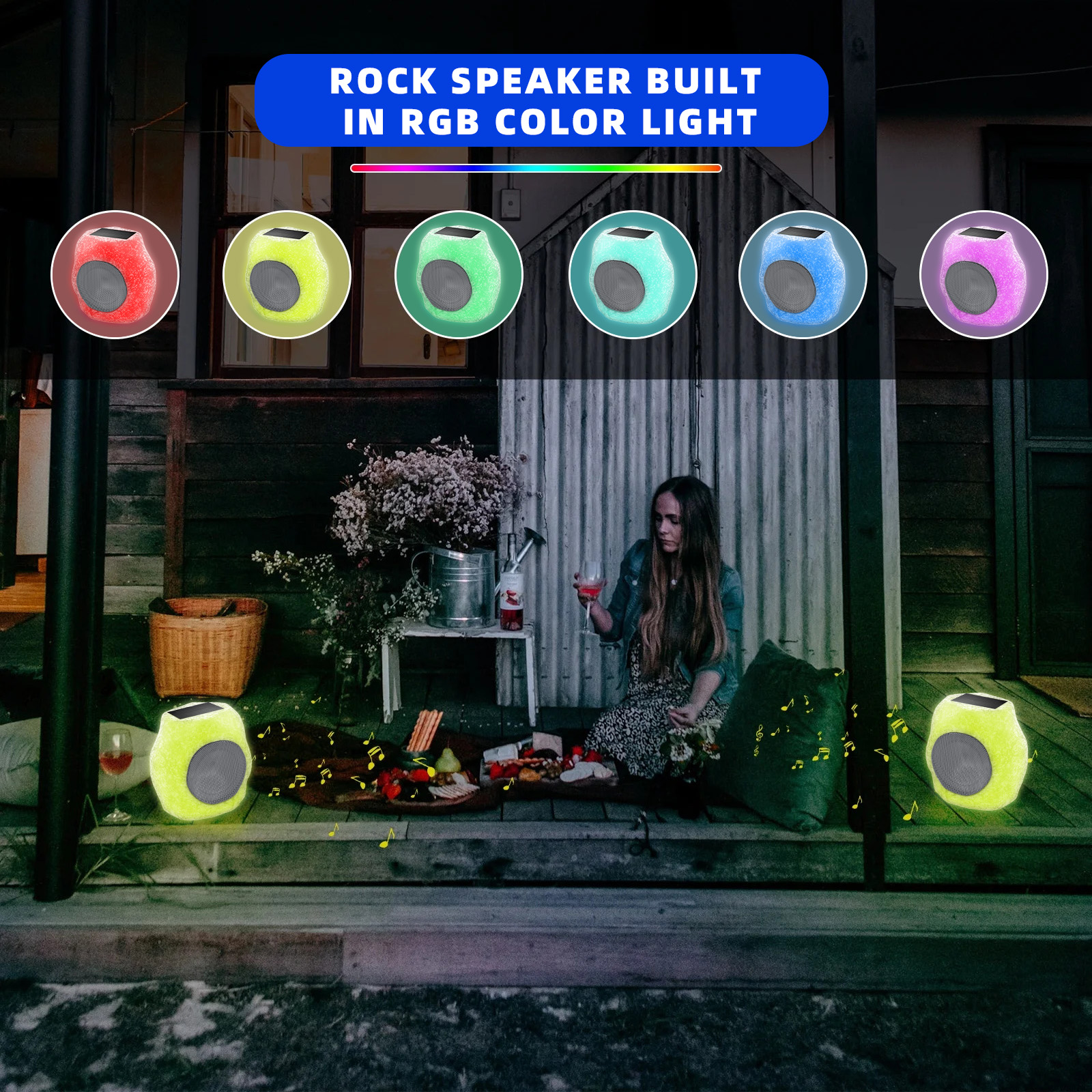 Outdoor Bluetooth Speakers, Rock Solar Speaker, Waterproof Wireless Rock Speakers Outdoor Waterproof Solar Bluetooth Speaker with Lights RGB TWS Pair for Pool Yard garden