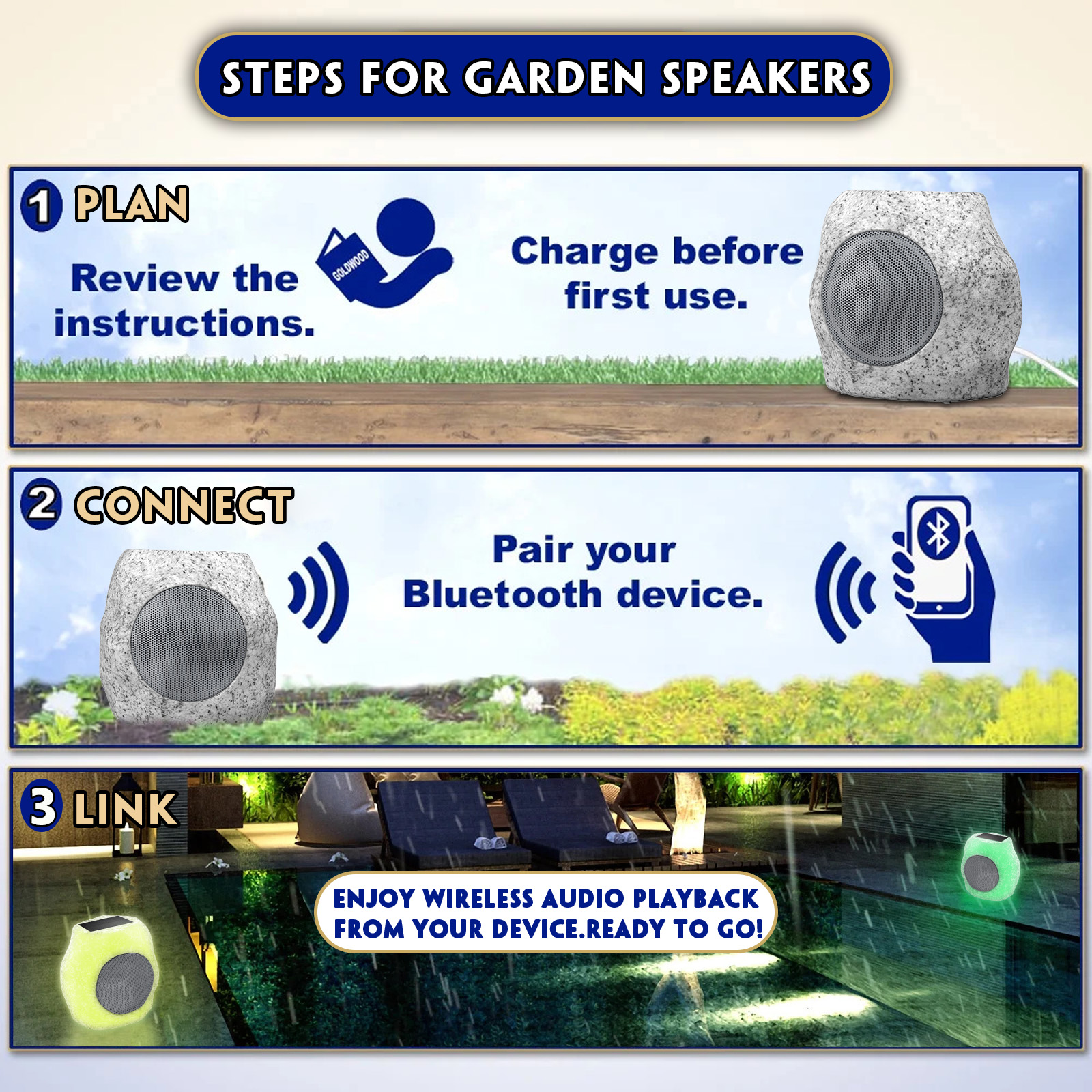 Multifunctional Wireless Outdoor Speakers: With a realistic stone look and powerful stereo surround sound, the outdoor bluetooth speaker is not only a speaker, but also a decorative piece that fits perfectly in any environment, decor or terrain.So wireless speaker is not only as a solar bluetooth speaker,also as patio speakers,LED night light,and atmosphere lamp. It’s a perfect gift for music lovers and tech enthusiasts alike.